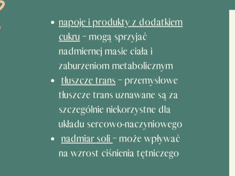 produkty wysokoprzetworzone i fast food – często zawierają duże ilości soli, tłuszczów nasyconych, trans i cukru