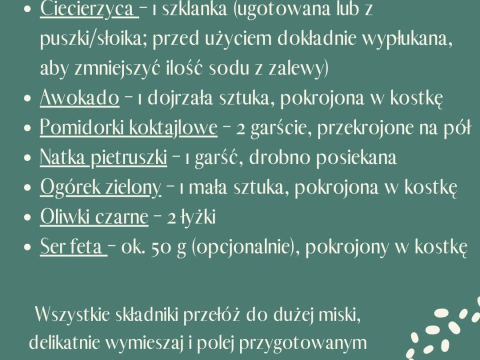 Często powtarzam moim podopiecznym, że to właśnie małe, codzienne zmiany przynoszą najlepsze i trwałe efekty 💚 Ta sałatka to doskonały wybór dla osób, które chcą wspierać zdrowie serca i naczyń krwionośnych ❤️ Jest bogata w witaminę C 🍋, roślinne białko 🌱, korzystne kwasy tłuszczowe 🫒 oraz błonnik.